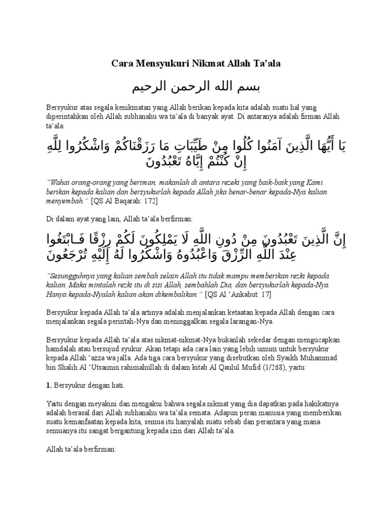 Related : Mensyukuri Nikmat Allah Dengan Cara : Mensyukuri nikamt allah itu merupakan suatu perbuatan mulia yang wajib dilaksanakan oleh manusia..