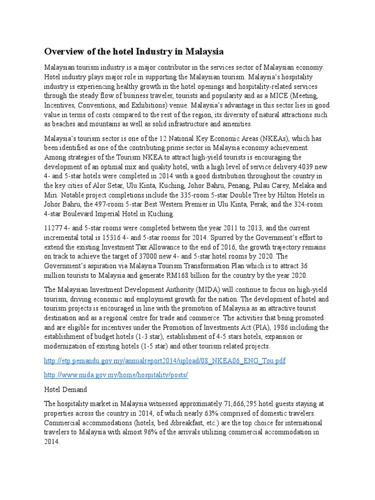 What does the hospitality industry in malaysia get to offer as serious and professional career growth and business opportunities? The hospitality industry offers many opportunities to the younger generation, especially individuals with finance, supervisory and managerial skills. It is one of the twelve national key economic areas (nkea). In malaysia, the hospitality industry has experienced a definite increase consistent with the growth of the global hospitality industry in recent years. Access new updated reports and statistics for the hospitality industry in malaysia.