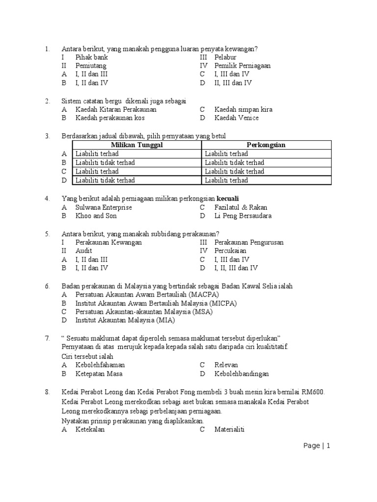 Dalam bahasa yang mudah, plt merupakan suatu bentuk perbadanan perniagaan alternatif yang menawarkan manfaat. 3.1 badan orang bermaksud suatu badan bagi orang yang tidak diperbadankan (bukan suatu syarikat) termasuk koperasi, kelab, persatuan, amanah dan keluarga sekutu hindu tetapi tidak termasuk perkongsian. Dengan kata lain, sekiranya berlaku penutupan perniagaan disebabkan muflis, pemilik akan turut sama menjadi muflis dan harta benda mereka akan disita. Maksud liabiliti dan perkataannya dalam bahasa inggeris. Ia memberikan status liabiliti terhad kepada pekongsinya dan menawarkan fleksibiliti peraturan dalaman melalui perjanjian di antara pekongsi. • liabiliti tidak terhad adalah bertentangan dengan liabiliti terhad, dan liabiliti pemilik atau pelabur tidak terhad kepada jumlah yang mereka sumbangkan. Menurut kamus pelajar edisi kedua, liabiliti bermaksud nilai tanggungan atau hutang sesebuah syarikat dll kepada orang (syarikat) lain. Apakah maksud liabiliti tidak terhad dalam perniagaan milikan tunggal ? Liabiliti bukan semasa (liabiliti jangka panjang) tanggungan hutang yang perlu dibayar balik dalam tempoh masa yang lebih panjang iaitu lebih daripada satu tahun. Liabiliti terhad bermaksud liabiliti seorang usahawan / peniaga adalah terhad hanya kepada jumlah pelaburan yang sudah dilaburkan di dalam sesebuah perniagaan. Tapi apa akan jadi, apabila perniagaan tidak mampu untuk membayar hutang berkenaan? Liabiliti terhad merupakan tanggungan perniagaan yang terhad kepada jumlah pelaburan yang telah dilaburkan dalam perniagaan yang berkenaan. Di mana, syarikat mempunyai liabiliti terhad manakala enteprise mempunyai liabiliti tidak terhad.