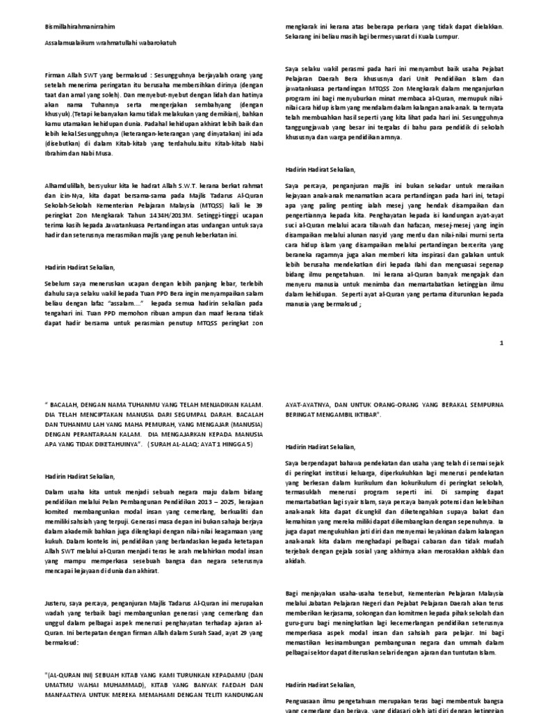 Teks Ucapan Pengerusi Majlis Tilawah Al Quran Peringkat Kebangsaan 2018 - Cfs student placed third in international quran memorisation competition.. Senarai qari dan qariah yang akan. Use the download button below or simple online reader. Seramai 27 orang peserta khatam dan tilawah dari negeri pahang yang terdiri dari daerah kuantan, pekan, kuala lipis, raub, jengka, muadzam shah, maran, temerloh, bentong dan jerantut. Jika ada, ianya kebetulan dan takdir semata. Contoh teks ucapan pengerusi majlis.