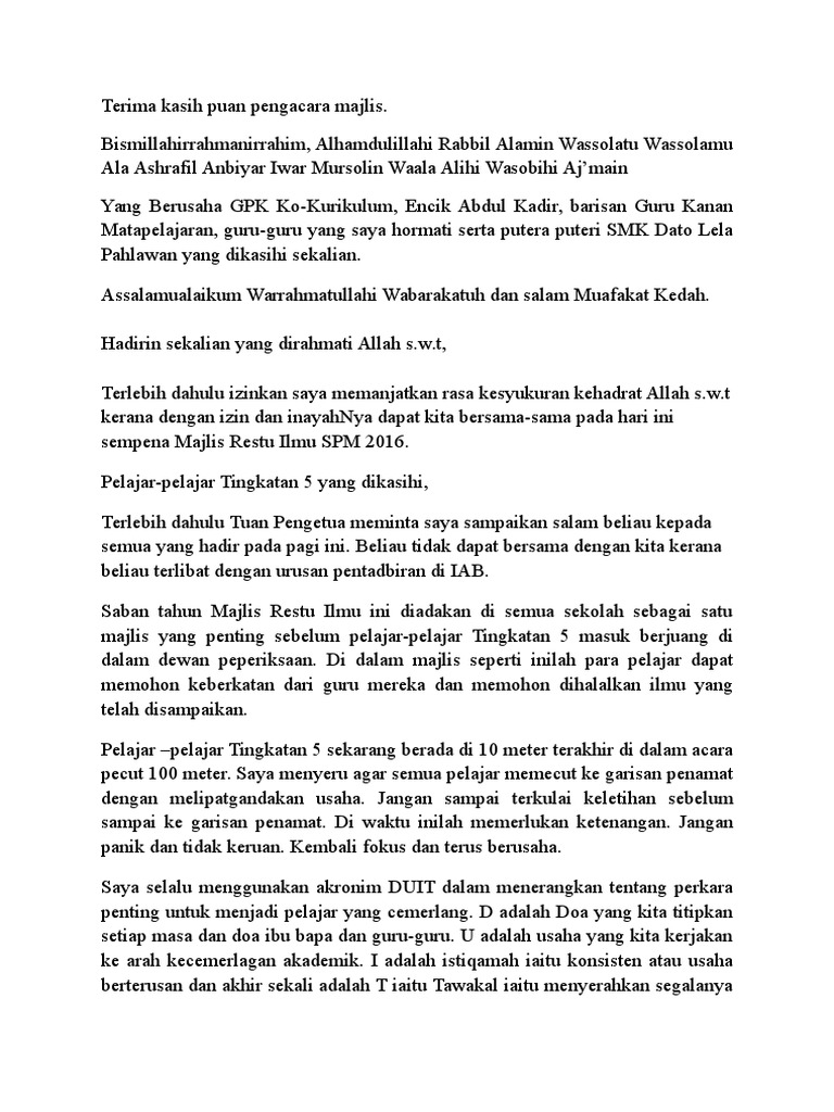 Teks Ucapan Wakil Pelajar Sempena Majlis Anugerah Cemerlang / Teks ucapan ketua pelajar sempena hari guru.. Ucapan wakil murid sempena majlis perpisahan soto mbah slamet. For more information and source, see on this link : Hadiah daripada wakil badan pengawas smk bukit besar 2011. Teks ucapan wakil pelajar sempena majlis anugerah cemerlang. Ucapan ketua murid jamuan thun 6.